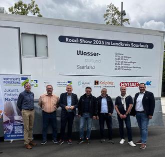 Die Road-Show des Wasserstoff-Trucks wurde organisiert von der Wirtschaftsförderung der Stadt Lebach, der Wirtschaftsförderung im Landkreis Saarlouis, der Kolping Bildung Deutschland gGmbH, der Arbeitskammer des Saarlandes, der Saarländischen Wasserstoffagentur H2Saar sowie dem Netzwerk für Transformation TraSaar.