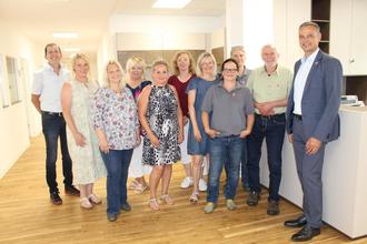 Der Lebacher Bürgermeister Klauspeter Brill und Roman Werth (u.a. zuständig für Wirtschaftsförderung bei der Stadtverwaltung) besichtigten die neuen Räumlichkeiten und begrüßten das Team in Lebach. „Von hier aus können wir Patienten im ganzen Saarland über relativ kurze Wege versorgen“, erklärt Chefin und Gründerin Sigrid Werner. Sie verspricht eine unmittelbare Versorgung durch ihr Team denn sie weiß aus Erfahrung: „Die Menschen haben keine Zeit zu warten, sie brauchen sofort Betreuung und Hilfe.“ Bürgermeister Brill bezeichnete das Angebot der SAPV-Care als idealen Lückenschluss. In Lebach gebe es neben der stationären Klinik viele gute niedergelassene Ärzte und Fachkräfte im medizinischen und therapeutischen Bereich. Davon profitieren die Menschen in jeder Phase ihres Lebens. Außerdem überzeugten ihn die Empathie und die Energie, die das Team der SAPV-Care ausstrahlt. Er wünscht den Ärzten und Pflegekräften stets viel Kraft für ihre Arbeit.