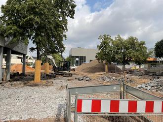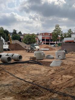 Die Arbeiten zur Umgestaltung des Rathausplatzes laufen nach Plan. Nachdem bereits Teile des Regenwasserkanals erneuert wurden, erfolgt aktuell weiterhin der Rückbau der Oberflächen, was mit massiven Materialbewegungen einhergeht.