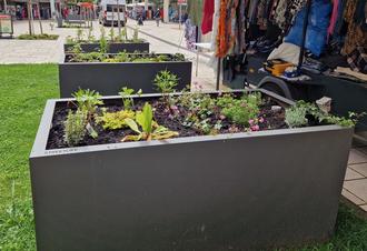 Bei der Neugestaltung der Lebacher Innenstadt wurden an mehreren Standorten Pflanzbeete aufgestellt und zwischenzeitig von engagierten Bürgern - unterstützt durch Sachspenden - angelegt und begrünt.
