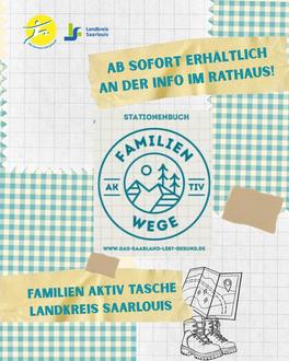 Zum Start der DSLG-Familien-Aktiv-Wege stellt der Landkreis Saarlouis gemeinsam mit den teilnehmenden Kommunen eine begrenzte Anzahl an gepackten Taschen mit dem Stationenbuch zur Verfügung. Diese können ab sofort an verschiedenen Ausgabestellen abgeholt werden – jeweils eine Tasche pro Familie, solange der Vorrat reicht. Eine Übersicht über die Ausgabestellen im Landkreis Saarlouis sowie eine digitale Version des Stationenbuches finden Sie unter https://pugis.de/dslg-familien-aktiv-tasche/.