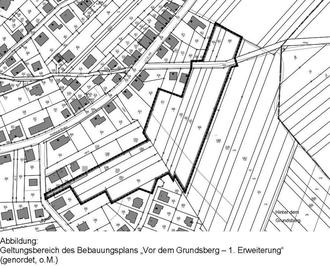 Mit dieser Bekanntmachung tritt der Bebauungsplan „Vor dem Grundsberg – 1. Erweiterung" in Kraft.