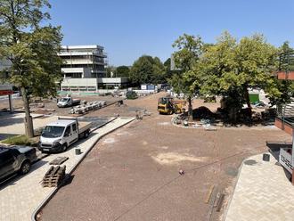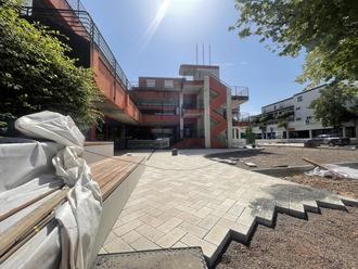 „Die Arbeiten am Rathausplatz verlaufen wie geplant und gehen in die finale Phase“, erklärt Michael Wagner, Leiter des Fachbereichs Bauen, Stadtplanung, Umwelt bei der Stadt Lebach. Und das trotz des unbeständigen Wetters. Derzeit sieht man jeden Tag Fortschritte auf den einzelnen Baufeldern. Die Flächen wie beispielsweise für den Spielplatz sind bereits eingefasst, die Treppenanlage hinter dem Hallenbad ist fertig und wieder begehbar, die Sitzelemente aus Sichtbeton und Holz sind nur deshalb noch abgedeckt, damit sie während der Bauarbeiten geschont werden.