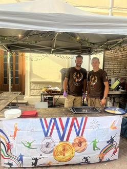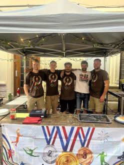 Das Team am Stand der Stadt Lebach. Mit Tshirts und dekoriertem Stand passend zum diesjährigen Estivales-Motto „L´année de jeux“, die Olympische Spiele in Paris.
