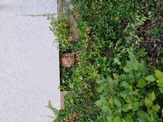 Abb. 3: freigelegtes Nest hinter einer Hecke im Rahmen eines Kellerfensters, Foto Forster-Seiwert