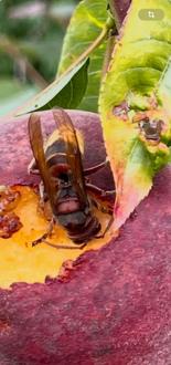 Abb. 5 Asiatische Hornisse auf reifem Pfirsich, Foto mit freundlicher Genehmigung von Wadgasser Einwohnern