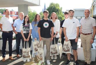 Im August und September haben insgesamt sieben Jahrespraktikantinnen, -praktikanten und Auszubildende ihren Dienst bei der Stadt Lebach angetreten. Bürgermeister Klauspeter Brill hat sie gemeinsam mit Roman Werth und Heiko Röder begrüßt, ihnen viel Erfolg und Spaß bei ihrer Arbeit gewünscht – und sie mit einem „Lebach-entdecken-Paket“ ausgestattet. Die umweltfreundliche Stofftasche mit Brotdose, Trinkflasche, Glasuntersetzer und Kühlschrankmagnet können sie sicher gut für die Pause an einem langen Arbeits- oder Schultag gebrauchen.