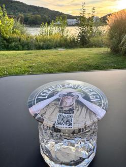 Die #lebachentdecken-Glasuntersetzer eignen sich nicht nur als Untersetzer, sondern auch als sichere Abdeckung von Getränken wie hier beim Campen. Vielen Dank auch für diese schönen Fotos mit „Eddy, dem Entdecker“ on tour.