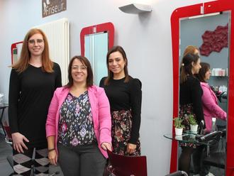 von links: Jessica, Jeannine und Nina (Spezialistin für Braut- und Hochsteckfrisuren. Foto: Kirsch/Stadt