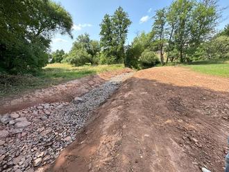 Nahezu fertig ist hingegen die Entflechtung der Außengebiete. Der Schellenbach wurde vom Durchlass unter der Straße bis zu seiner Mündung in die Theel renaturiert.