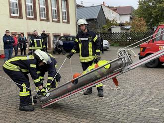 Als erstes wurde am Seniorentreff eine Menschenrettung mit Brandbekämpfung demonstriert, beim zweiten Szenario wurde ein ABC-Einsatz simuliert. Aus einem Anhänger tropfte eine unbekannte Flüssigkeit. In direkter Nähe befand sich eine bewusstlose Person. Als nächstes wurde ein Technische-Hilfe-Leistungseinsatz simuliert. Dabei befand sich eine Person unter der Schaufel eines Radladers. Die eingeklemmte Person musste befreit werden. Abschließend wurde eine verletzte Person über eine sogenannte “Schiefe Ebene“ vom Hallendach der Mehrzweckhalle gerettet. Im letzten Szenario erfolgte am Musik- und Kulturspeicher eine Menschrettung über die Drehleiter sowie die Brandbekämpfung über mehrere C-Rohre. Während der Übung war die Einsatzbereitschaft der Wehr für den Ernstfall jederzeit sichergestellt. Im Anschluss an die von zahlreichen Interessierten verfolgte Übung wurden Ehrungen und Beförderungen von Mitgliedern in der Mehrzweckhalle Gresaubach vollzogen.
