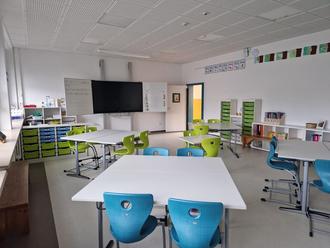 So wurden alle Klassenräume durch den Einbau von akustisch wirksamen Decken und Schallschutztüren ausgestattet, die zu einem deutlich verbesserten Vermitteln und Verstehen der Lerninhalte beitragen. Der Digitalisierung wurde durch Wlan und die Anschaffung von Smartboards in allen Klassenräumen Rechnung getragen.