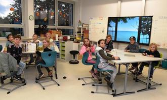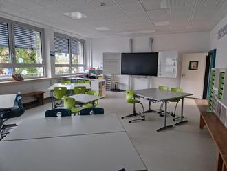 Die Schülerinnen und Schüler fühlen sich in ihren neuen Räumen wohl. Ausgestattet sind diese u.a. mit einem digitalen Smartboard. Foto: Dieter Lorig