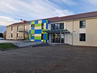 Am 15. März 2022 hat die Sanierung der St. Barbara-Grundschule in Landsweiler begonnen, nun sind die neuen Räume der Öffentlichkeit vorgestellt worden. Dazwischen lagen lange Monate, in denen der Schulbetrieb ausgelagert werden musste. Kinder und Lehrkräfte wichen in mobile Container auf dem Festplatz am Stangenwald aus, denn es galt, das alte Gebäude grundlegend, nachhaltig und energetisch zu sanieren.