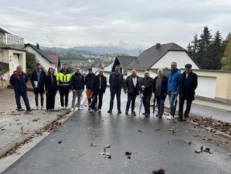 Ortsvorsteher, Vertreter der Stadt und der städtischen Gesellschaften sowie aller an der Baumaßnahme beteiligten Unternehmen trafen sich zur offiziellen Abnahme in der Straße „Zum Eisrech“.