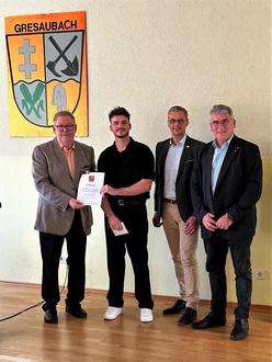 von links: Ortsvorsteher Fred Metschberger, Nils Kammer, Bürgermeister Klauspeter Brill und Christian Petry, MdB, bei der Ehrung im Wendalinushaus.