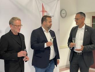 Lebachs Bürgermeister Klauspeter Brill (rechts) im Gespräch mit Gesundheitsminister Dr. Magnus Jung und Dr. Rüdiger Fuchs, Vorsitzender der Hildegard-Stiftung. Foto: Kirsch/Stadt