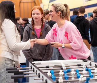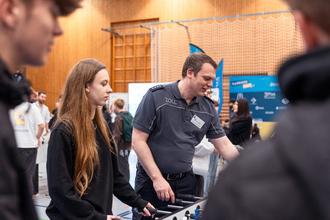 Unter dem Motto „So bringen Schüler den Ball für ihre berufliche Zukunft ins Rollen“ wird den Teilnehmern ein innovatives Konzept geboten: Am Kickertisch können sie sich über Ausbildungsplätze und Praktika informieren und direkt mit Unternehmensvertretern ins Gespräch kommen. „Nicht nur junge Leute tun sich oft schwer, auch Unternehmen brauchen innovative Konzepte, um Nachwuchskräfte zu akquirieren“, weiß der Wirtschaftsförderer der Stadt Lebach Roman Werth. „Genau hier setzt diese Berufsorientierungsmesse an.“ Durch das gemeinsame Kickern bricht das Eis schnell. Schüler und Unternehmensvertreter lernen sich authentisch kennen – in lockerer Atmosphäre entstehen Kontakte, die in Erinnerung bleiben.