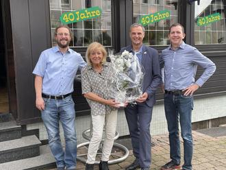 Die Rundumtheke zieht sich durch die gesamte Kneipe und ist das Herzstück der „Bierstubb“. Hier steht Birgit Fortmüller Tag für Tag seit 1982 – außer dienstags, dann ist Ruhetag. Am Mariä Geburtsmarkt und am Faasend-Dienstag ist dienstags natürlich trotzdem geöffnet, schließlich sind das die höchsten Feiertage in Lebach. Und dann platzt die Lebacher Bierstubb meist aus allen Nähten. Proppenvoll war es auch zur Jubiläumsfeier am letzten Oktoberwochenende. Kaum einer ließ es sich nehmen, der Traditionswirtin an diesem Tag zu gratulieren. Auch Bürgermeister Klauspeter Brill, der Geschäftsleitende Beamte und Wirtschaftsförderer Roman Werth sowie Florian Wagner (Sachgebietsleiter Schule, Kultur und Sport) überbrachten die besten Wünsche der Stadt und wünschten der Wirtin für die Zukunft alles Gute.