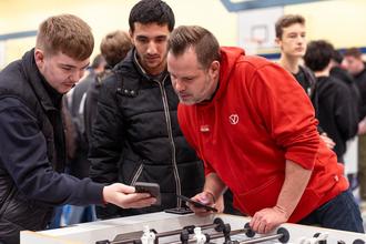 Beim „Karriere Kick“ lernen sich Schüler und Unternehmensvertreter spielerisch bei Tischkicker-Partien kennen. Angelehnt an das Speed Dating-Konzept tritt eine Gruppe von drei Schülern in einem Zwei-gegen-Zwei-Spiel gegen einen Unternehmensvertreter an. Zusätzlich können sich die Jugendlichen an den Unternehmens-Ständen über Praktika und Ausbildungsmöglichkeiten informieren.