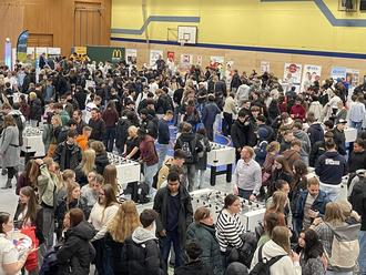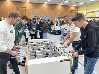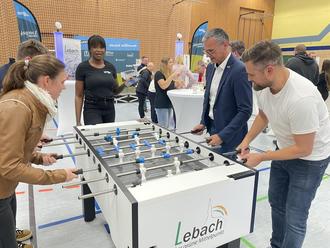 Bereits zum 3. Mal hat sich die Großsporthalle an der Dillinger Straße vergangene Woche in eine Messe- und Kickerhalle verwandelt. Über 30 Unternehmen stellten sich auf der Suche nach künftigen Fachkräften an Messeständen vor und traten an 30 Kickertischen mit rund 800 Schülerinnen und Schülern in Kontakt. Die Berufsorientierungsmesse der besonderen Art wird vom Marketingunternehmen 3Plus Solutions organisiert und von der Wirtschaftsförderung der Stadt Lebach unterstützt.
