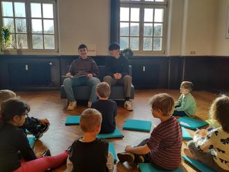 Dieses Jahr waren unter der organisatorischen Leitung der VHS Lebach und der inhaltlichen Leitung des Netzwerk Leselust als Vorlesepaten 13 Schülerinnen und Schüler des JKG Lebach im Ersatz sowie neun erwachsene Ehrenamtliche.