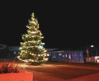 Der Weihnachtsbaum auf dem Bernhard-Scholl-Platz in Dörsdorf. Bisher noch ohne Schnee, aber das könnte sich bis Weihnachten ja noch ändern...