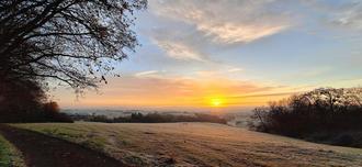Morgendlicher Blick von Tanneck auf das winterliche Lebach. — Foto: Petra Ferring