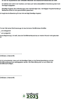 Aus diesen Vorschlägen wählt der Schöffenwahlausschuss beim Amtsgericht in der zweiten Jahreshälfte 2023 die Haupt- und Ersatzschöffen. Gesucht werden Bewerberinnen und Bewerber, die in der Gemeinde wohnen und am 1.1.2024 mindestens 25 und höchstens 69 Jahre alt sein werden.