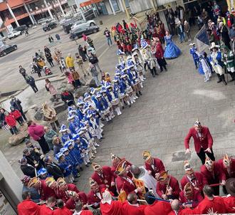 Die Stadtverwaltung rechnet auch diesem Jahr an Fetten Donnerstag wieder mit dem Sturm des Rathauses durch die Närrinnen und Narren. Foto aus 2023: Kirsch/Stadt