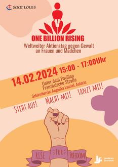 Jede dritte Frau weltweit wird im Laufe ihres Lebens geschlagen, vergewaltigt oder ist in anderen Formen von Gewalt betroffen. Dies sind 1 Milliarde Frauen, also "One Billion", daher der Name der Aktion. Das hat die New Yorker Feministin und Künstlerin Eve Ensler im Jahr 2012 dazu veranlasst, diese Bewegung ins Leben zu rufen. Der Aktionstag findet immer am 14. Februar statt. So auch in Saarlouis. Der Mädchenarbeitskreis im Landkreis Saarlouis und die Kreisstadt Saarlouis machen sich stark für die Rechte von Mädchen und Frauen und fordern globale Solidarität und Stärke.
