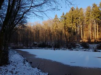 Der Lieblingsplatz von Yvonne Breyer ist der Weiher in Aschbach. Sie geht dort gerne mit ihrem Hund spazieren. Vielen Dank für die Teilnahme an unserem Wettbewerb #lieblingsplatzinlebachentdecken und dieses tolle Winterfoto.