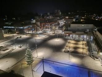 Die Optik des „Rathausplatzes“ knüpft nahtlos an die Gestaltung der „Fußgängerzone“ an. Auch das Lichtkonzept wurde hier fortgesetzt. Foto: Michael Wagner/Stadt Lebach