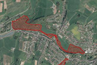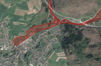Beispiel Eppelborn: Die Ill-Aue ortseingangs hält Wassermengen zurück, durch die ansonsten das (vor langer Zeit) in die Aue gebaute Gewerbegebiet bei jedem Hochwasser überschwemmt würde (Luftbild oben, das Naturschutzgebiet ist rot schraffiert). Hinter dem Gewerbegebiet bis zur Mündung in die Theel stehen dann wiederum große Überschwemmungsflächen zur Verfügung, die nur als extensive Mähwiesen genutzt werden (Luftbild unten, das Naturschutzgebiet ist rot schraffiert).