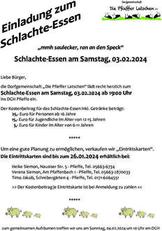 Schlachte-Essen am Samstag, 03.02.2024 ab 19:00 Uhr