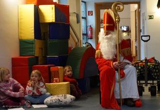 Während des gemeinsamen Singens – in unserem Atrium – bekamen die Kinder plötzlich große leuchtende Augen. Da kam doch wirklich der gute Nikolaus und hatte für jedes Kind eine Kleinigkeit in seinem Bollerwagen mitgebracht.