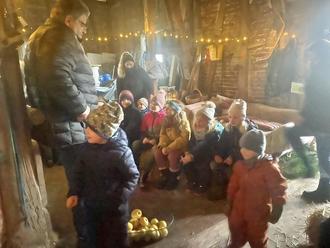 Am 20. Dezember 2024 hatte die Familie Blumenstein die Kinder des Dorfes mit Eltern in ihren Eselstall am Rande von Bergheim eingeladen. Der Gedanke dabei war, den Kindern zu zeigen, wie Jesus seinerzeit geboren wurde - in einem einfachen Stall.