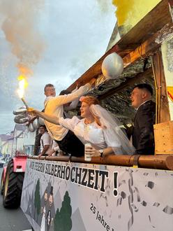 Korbinian André und Simon Tögel präsentierten das Silberhochzeitspaar und setzten ein bleibendes Zeichen für die gelungene viertägige Jubiläums-Kirmes-Veranstaltung.