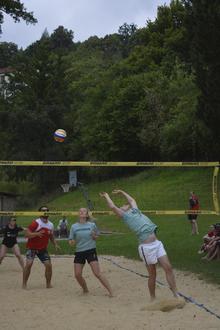 Am 16.08.25 fand das 3. Beachvolleyballturnier in unserem wunderschönen Liebenbachbad statt. Beim Turnier traten vier einheimische und sechs auswärtige Mannschaften mit hoch motivierten Spielern an. Vom Anfänger bis zum Ligaspieler war alles vertreten. Bei heiter bis wolkigen Himmel und angenehmen 20 Grad begann das Turnier um 11:30h. Gespielt wurde 4 gegen 4, mit mindestens einer Frau im Team, nach den Hallenvolleyballregeln.