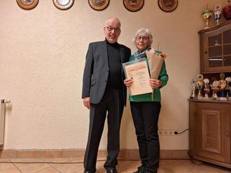Das Foto zeigt Frau Helga Waldert-geehrt für 60jährige Mitgliedschaft-zusammen mit dem Sprecher des Verwaltungsrates Gerhard Zeebe