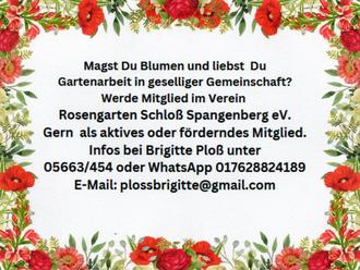 Am 26. März fand die Jahreshauptversammlung des Rosenvereins Schloß Spangenberg e. V. in den Räumen des Schlosses Spangenberg statt. Die 1. Vorsitzende Brigitte Ploß konnte nahezu die Hälfte aller Mitglieder begrüßen. Sie dankte allen Mitgliedern, die im abgelaufenen Rosenjahr ihre Arbeitskraft im Rosengarten eingebracht haben.
