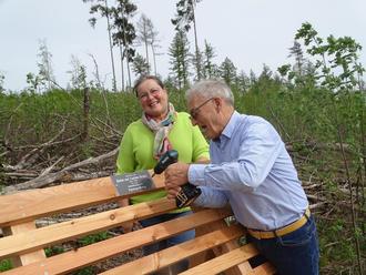 Gebaut wurde die Bank in der Werkstatt von Joanas Klages, unter Mithilfe seines Sohnes Hugo, in Mörshausen. Die beiden Wegewarte des Heimatvereins fertigten zwischenzeitlich die Fundamente an, um die Bank sicher und stabil aufstellen zu können. Das Baumaterial und auch später die fertige Bank wurden von Fritz Körber mit seinem Trecker zum Standort transportiert. Hier wurde sie dann von den beiden Wegewarten sicher mit den Fundamenten verschraubt. Letzte Hand legte dann Joachim Hetzler selbst an um eine Erinnerungstafel an der Bank zu befestigen. Mit einem kleinen Umtrunk am Nachmittag des 13. April 2024 wurde die Bank offiziell eingeweiht. An dieser Stelle bedankt sich der Heimatverein bei den Spendern und Allen die zum Gelingen beitragen haben.