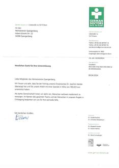 Die Organisation „German Doctors“ bedankte sich mit dem hier veröffentlichen Schreiben für die großzügige Spende.