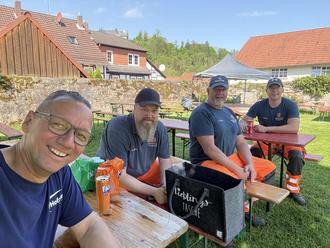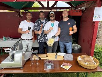 Markus, Arno, Michael und Carlo kümmerten sich auch in diesem Jahr wieder um Ahlewurscht, Käsewürfel und Weintrauben.