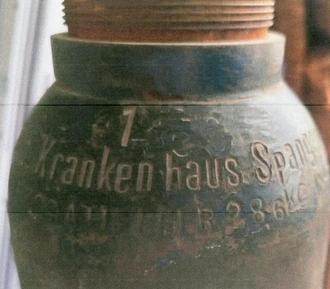 Sauerstoffflasche aus dem ehem. Behelfskrankenhaus Beieröde (gest.v.DRK Spangenberg)