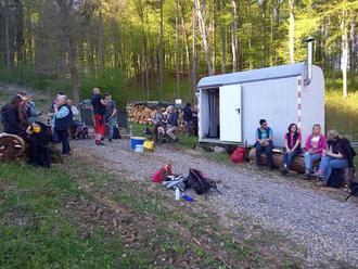 Nach einer kurzen Verschnaufpause bei mitgebrachter Rucksackverpflegung ging es gestärkt weiter zum Bauwagen am Waldrand. Dort warteten bereits Walter Krause und seine Frau mit kühlen Getränken und herzlicher Gastfreundschaft auf die Wandergruppe – ein willkommener Abschluss bei bestem Wetter.