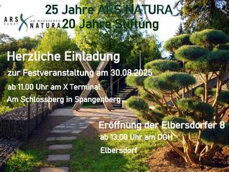 Nach 25 Jahren ARS NATURA und 20 Jahren ARS NATURA-Stiftung hat dieses nordhessische Produkt mit 380 km Wanderwegen und etwa 470 Kunstwerken in der Natur Alleinstellungsmerkmal erhalten. Unsere Galerie in der Natur wertet den ländlichen Raum kulturell auf, gibt diesem eine besondere kulturtouristische Note, indem sie beim Wandern künstlerische Erlebnisse bietet und zu ökologischen sowie historischen und politischen Reflexionen anregt. Auch Mythologie und nordhessische Märchenwelt sind Quellen der Inspiration für die Künstlerinnen und Künstler. U.a. werden als Gäste und Redner Herr Staatssekretär Degen, Hessisches Ministerium für Wissenschaft und Kunst, Herr Regierungspräsident Weinmeister, Herr Exner, Leiter der Grimm Heimat Nordhessen, Herr Dr. von Busse, Kulturredaktion HNA Kassel, Herr Kaufmann, Schwalm-Eder-Kreis... erwartet. Am Nachmittag wird die neue ARS NATURA-Teilstrecke "Elbersdorfer 8" in Spangenberg-Elbersdorf eröffnet, ein Rundweg mit wunderbaren Ausblicken, der das "Kunstwanderland" um Spangenberg vorerst komplettiert. - Samstag, 30.08.2025 - um 11 Uhr, X-Terminal am Spangenberger Schlossberg - ab 13 Uhr, DGH Spangenberg-Elbersdorf Sowohl zur Jubiläumsfeier als auch zur Einweihung der Elbersdorfer 8 laden wir alle Freunde von ARS NATURA und alle Interessierten herzlich ein. Weitere Details siehe nächste Ausgabe der Stadtzeitung.