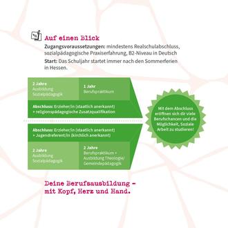 Mitten in Spangenberg, in direkter Nachbarschaft zur Burgsitzschule – im historischen Burgsitz und im Evangelischen Gemeindehaus – werden seit August 2024 angehende Erzieherinnen und Erzieher ausgebildet. Das Himmelsfels Kolleg ist eine staatlich anerkannte Fachschule für Sozialwesen mit den Fachrichtungen Sozial- und Gemeindepädagogik. Die Ausbildung findet in Vollzeit über drei Jahre statt. Wer sich zusätzlich für die kirchliche Kinder- und Jugendarbeit qualifizieren möchte, kann im Anschluss ein weiteres Ausbildungsjahr absolvieren und die Zusatzqualifikation als Jugendreferent/in erwerben (siehe Grafik).