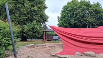 In der Nacht von Donnerstag auf Freitag haben Unbekannte erneut mutwillige Beschädigungen auf dem Außengelände der Kindertagesstätte „Alter Bahnhof“ verursacht. Mehrere Schindeln wurden vom Kletterturm gewaltsam abgerissen, außerdem wurde ein großes Sonnensegel aus seiner stabilen Verankerung gerissen.
