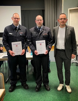 Bürgermeister Ralf Eberwein übernahm die Ernennungen von Björn Lücke und Marco Adrian. Nils Heinemann war leider verhindert.